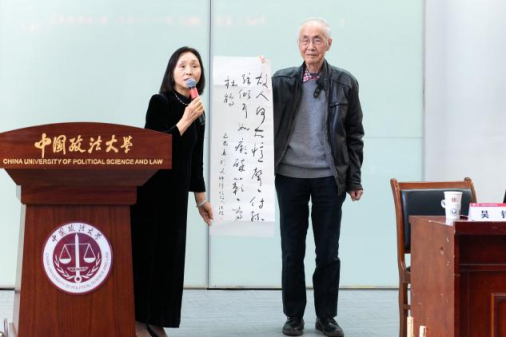 最后,康晨宇教授就学校艺术学科在继承和创新中华优秀传统文化方面做了总结发言。孙鹤教授感谢了吴钊先生对经典曲目的细致解析和深入挖掘,认为古琴艺术作为中华民族传统文化的瑰宝,承载着数千年的人文修养和精神追求,传承经典在当今时代依然具有重要意义。为表谢忱,孙鹤教授向吴钊先生赠送了书作。