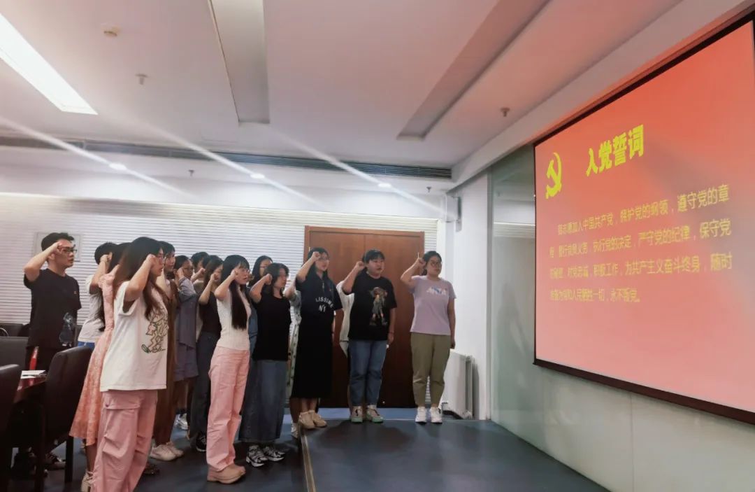 在座谈交流环节,杨军与同学们热切交谈,对同学们提出的关于学院党建工作以及人才培养工作的建议给予积极回应。党课最后,毕业生党员重温入党誓词,回顾自己作为一名党员的初心和使命。