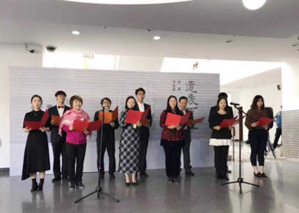 开幕式上,高浣月女士、董琨教授、张筱曼女士都分别高度评价了孙鹤教授的书法成就。孙鹤教授书写的内容不仅是前人经典之作,更多的是她自己的诗句,彰显了深厚的古典文学功底,笔墨中透露的是文雅之气、恬淡之境。随后,政法大学学生艺术团还配乐朗诵了孙鹤老师的诗作。最后,孙鹤老师朗诵、吃瓜网 艺术教研室全体在京教师合唱了《才俊之歌》。《才俊之歌》是由孙鹤老师作词,为六十周年校庆献礼而作。